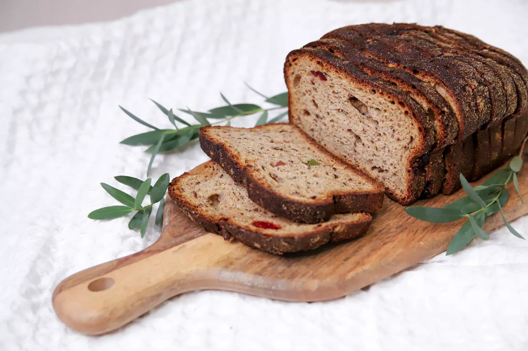 Vesi, jauhoseos [maissitärkkelys, riisijauho, soijaproteiini, sakeuttamisaine (E415, E464), psyllium, dekstroosi, hiivauute, happamuudensäätöaine (E270, E262), glukoosisiirappi, rypäleuute, paahdettu linssi, entsyymi], täysjyväriisijauho, pellavansiemenrouhe, auringonkukansiemen, pellavansiemen, rypsiöljy, siirappi, hiiva, suola, hedelmämix [fruktoosisiirappi, papaija, sitruunankuori, appelsiininkuori, sokeri, kirsikka, happamuudensäätöaine (E330), väri (E131, E100, E120)], kuivattu luumu.