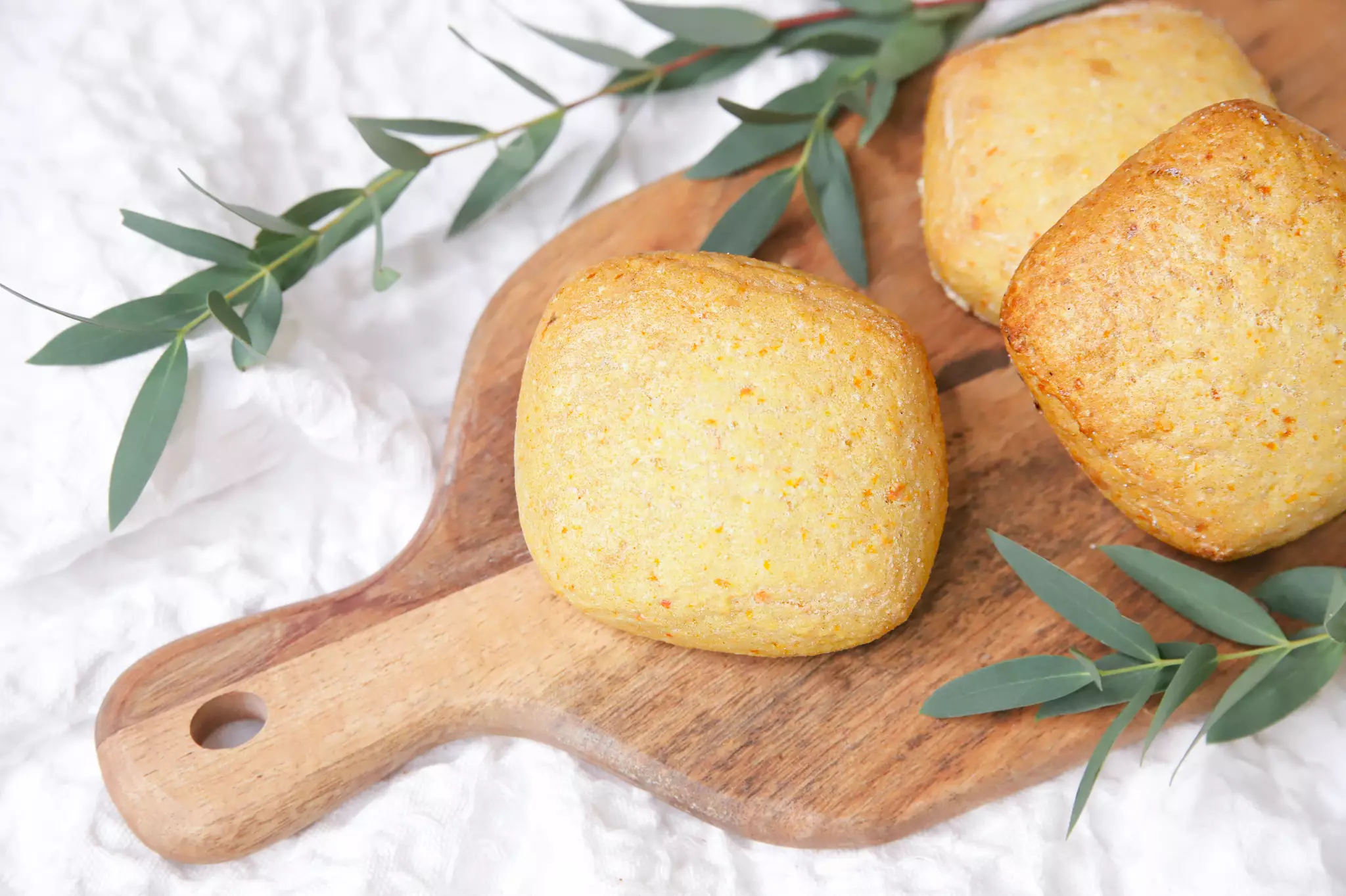 Vesi, jauhoseos [tärkkelys (peruna, maissi, tapioka), kasvikuidut (psyllium, inuliini), riisijauho, emulgointiaine (E471), kasviproteiini (herne), sakeuttamisaineet: guar, (E464), mallas (maissi)], porkkanasose, perunahiutale, rypsiöljy, hiiva, suola.