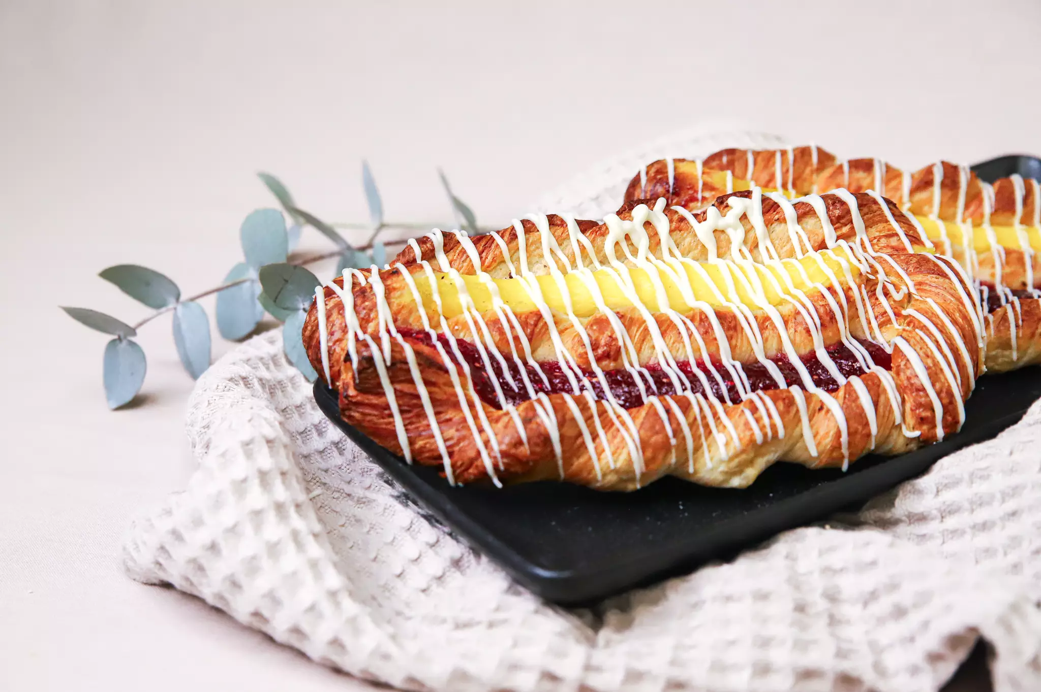 Vehnäjauho, kasviöljy-ja rasva (palmu, osittain kovetettu), rypsiöljy, kookos, emulgointiaine (E330, E471) (kasvirasvasta), aromi, A-ja D-vitamiinit, happamuudensäätöaine (E160a), vadelma-omenamarmeladi [vadelma (18 %), omena (9 %), sakeuttamisaineet (E1442 peruna, E440), happamuudensäätöaine (E333), väri (E162), säilöntäaine (E202)], vanilijakreemi [modifioitutärkkelys(peruna), glukoosisiirappi, sakeuttamisaineet (E401, E412), emulgointiaine (E472e), happamuudensäätöaineet (E263, E340), vanilliini, aromi], vesi, kananmuna, sokeri, hiiva, kuorrute [laktoosi, herajauhe (maito), emulgointiaineet (E492, E322) (soijalesitiini), aromi suola, paakkuuntumisenestoaine (E170), emulgointiaine (E472e kasviperäinen)], hapettumisenestoaine (E300), entsyymit (ksylaasi, amylaasi, lipaasi), kardemumma.