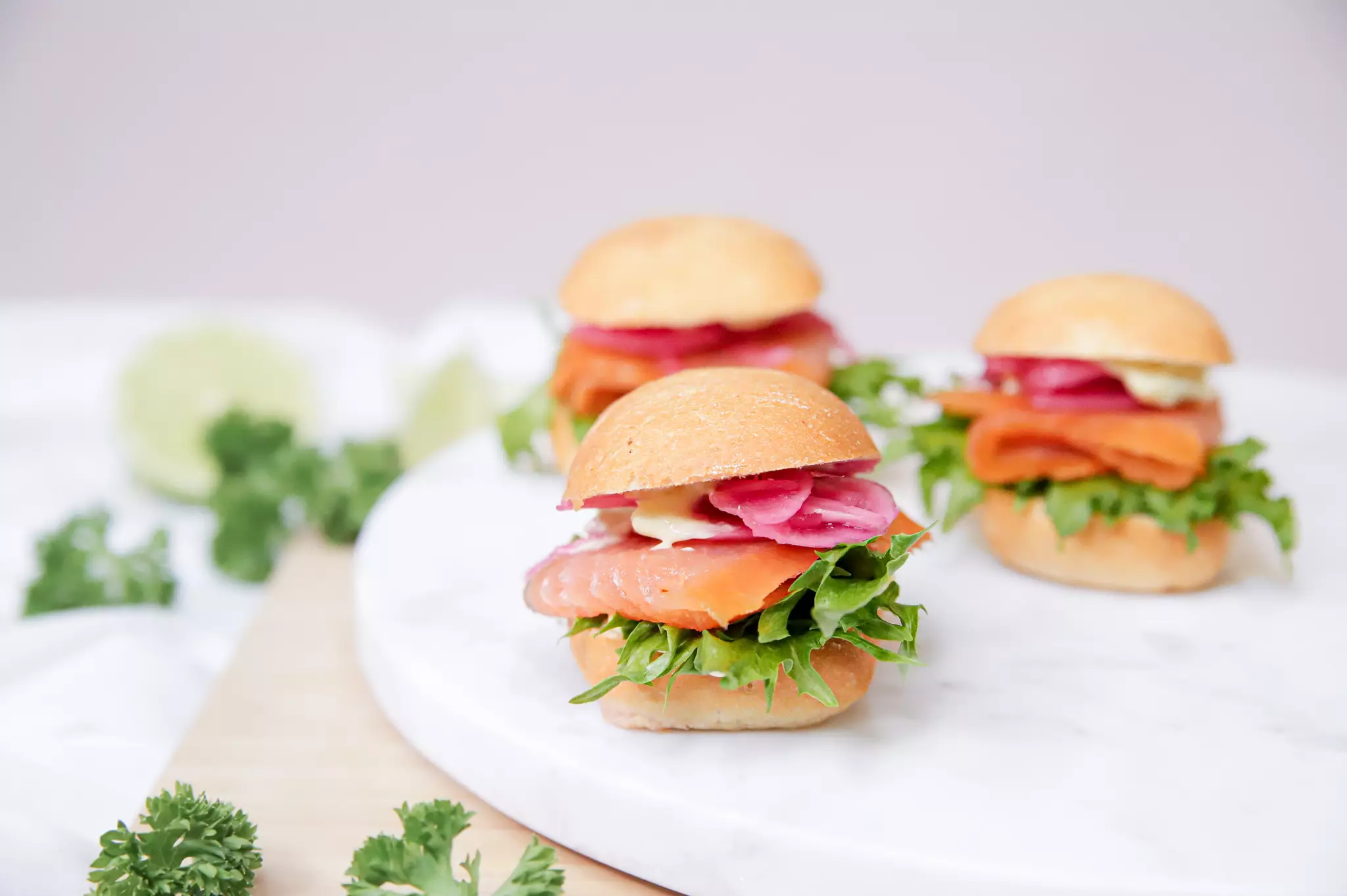 Täyte: kylmäsavulohi [(lohi (norja), suola, happamuudensäätöaine (E267)], kurkkumajoneesi [majoneesi (rapsiöljy (EU), vesi, kananmunankeltuainen, väkiviinaetikka, sokeri, suola, sinapinsiemen, säilöntäaineet (natriumbentsoaatti, kaliumsorbaatti), sakeuttamisaineet (ksantaanikumi, guarkumi), aromi, valkopippuri], kurkkusalaatti [kurkku, sokeri, vesi, sipuli, paprika, etikka, muunneltu maissitärkkelys, suola, sakeuttamisaineet (karrageeni, ksantaanikumi), mausteet sinapinsiemen, valkopippuri, kurkuma, hapettumisenestoaine (natriumsitraatti, askorbiinihappo), aromit, säilöntäaine (natriumbentsoaatti), väri (klorofylli), mustapippuri], salaatti, marinoitu punasipuli (etikka, sokeri, vesi).