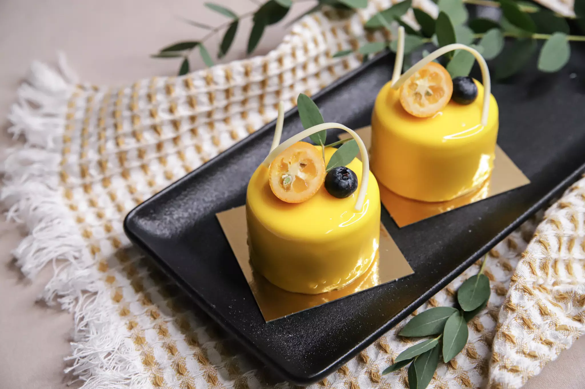 Gluteeniton jauhoseos (riisijauho, maissitärkkelys, perunajauho, modifioitu perunatärkkelys, sakeuttamisaine: ksantaanikumi), laktoositon voi, sokeri, kananmuna, leivinjauhe, vanilliinisokeri, psyllium, valkosuklaasydän (laktoositon kerma, valkosuklaa, laktoositon maito, liivate), passionmousse [laktoositon kerma, passionpyree, kananmuna, laktoositon voi, suola, hapate, happamuudensäätöaine (E500), sokeri, liivate], glaze (laktoositon kerma, sokeri, maissitärkkelys, liivate).