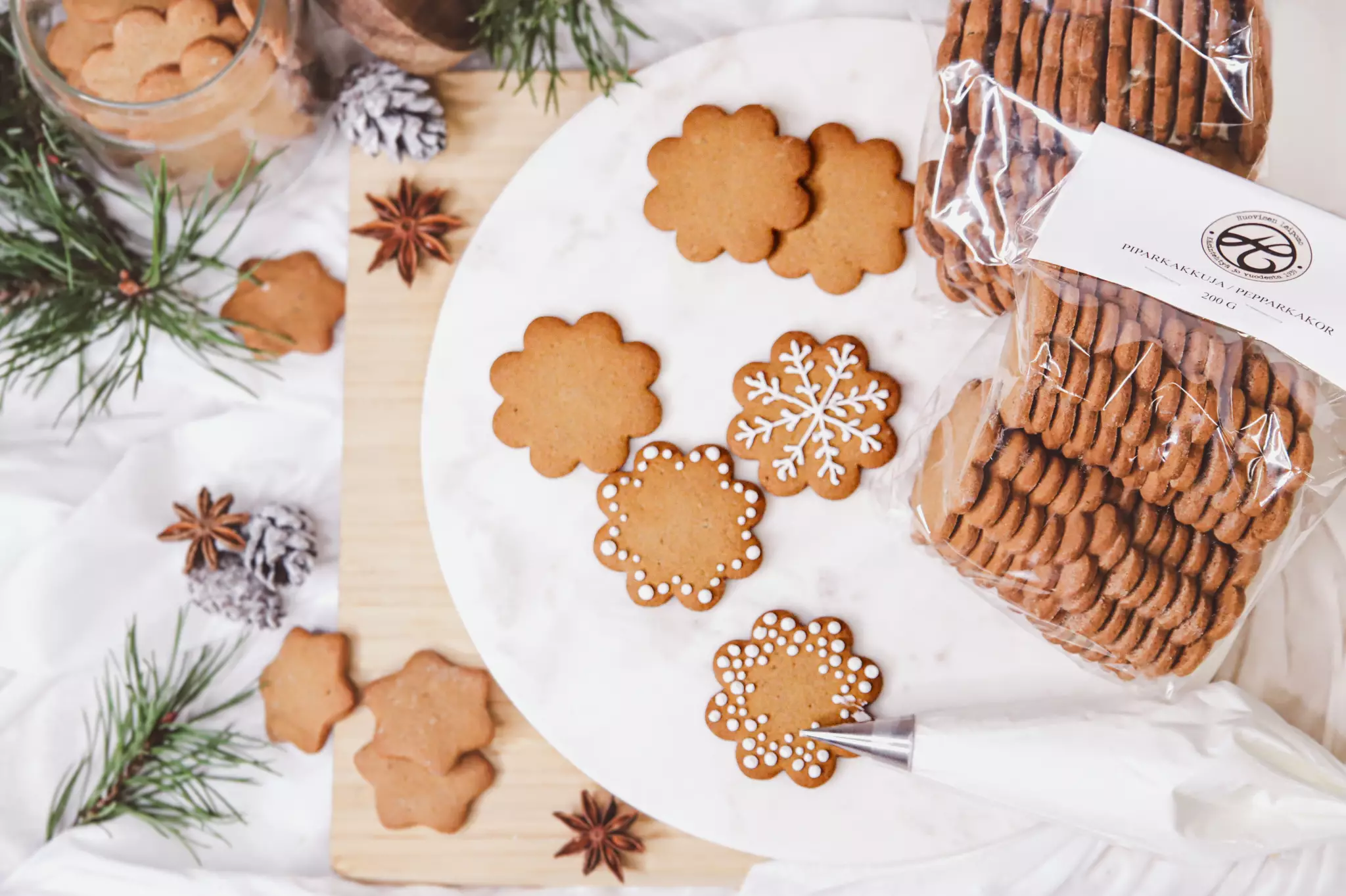 Vehnäjauho, voi, siirappi, sokeri, fariinisokeri, nostatusaine (E500), kardemumma, kaneli, neilikka.