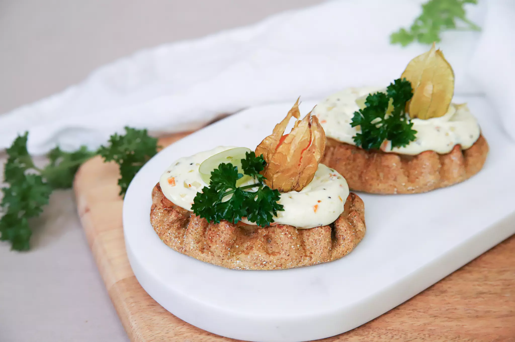 Täyte: remoulade [vegaanimajoneesi (kasviöljy (rypsi/rapsi), vesi, auran sinappi mm. sinapinsiemen, mausteuute, kurkuma, etikka, sokeri, muunneltu tärkkelys (peruna, maissi), suola, sakeuttamisaineet (ksantaanikumi, guarkumi), säilöntäaineet (E202, E211), happamuudensäätöaineet (natriumkarbonaatti, sitruunahappo), hapettumisenestoaine (E385)], tartar-pikkelssi [porkkana, kurkku, sokeri, etikka, kukkakaali, sipuli, vesi, jodioitu suola, säilöntäaine (kaliumsorbaatti), aromit (neilikka, valkopippuri), kylmäliukoinen tärkkelys (muunnettu perunatärkkelys, perunatärkkelys, maltodekstriini, sakeuttamisaine (guarkumi), auringonkukkaöljy), sitruunatäysmehu, suola, mustapippuri], juustotäyte [koskenlaskija juusto, vesi, voi, sulatesuolat (E452, E339, E331), suola, paakkuuntumisenestoaine (E460)], vispikerma (kerma, stabilointiaine (karrageeni)), kurkkusalaatti [kurkku, sokeri, vesi, sipuli, paprika, etikka, muunneltu maissitärkkelys, suola, sakeuttamisaineet (karrageeni, ksantaanikumi), mausteet (sinapinsiemen, valkopippuri, kurkuma), hapettumisenestoaine (natriumsitraatti, askorbiinihappo), aromit, säilöntäaine (natriumbentsoaatti), väri (klorofylli)), mustapippuri)]