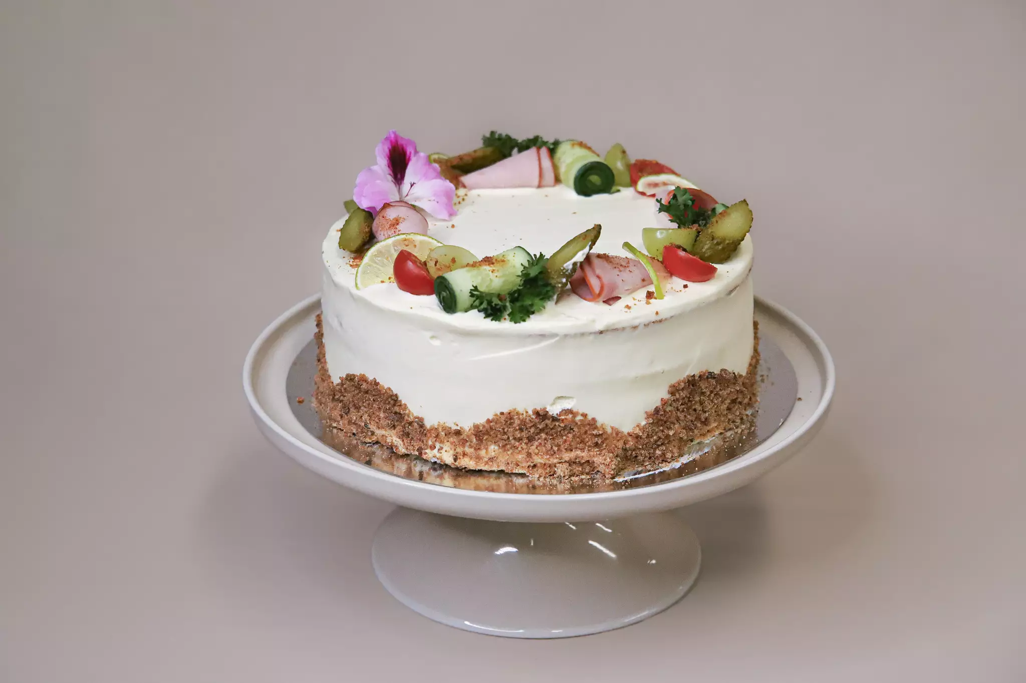 Täyte: kinkkutäyte [maalaiskinkku (porsaankinkku (suomi), vesi, suola, aromit, stabilointiaineet (trifosfaatit, käsitelty eucheuma-levä), dekstroosi, hapettumisenestoaine (askorbiinihappo), säilöntäaine (natriumnitriitti)], tuorejuusto [pastöroitu kirnumaito ja kerma, laktaasientsyymi, hapate], majoneesi [rapsiöljy (EU), vesi, kananmunankeltuainen, väkiviinaetikka, sokeri, suola, sinapinsiemen, säilöntäaineet (natriumbentsoaatti, kaliumsorbaatti), sakeuttamisaineet (ksantaanikumi, guarkumi), aromi, valkopippuri, dijon-sinappi (vesi, sinapinsiemen (EU ja ei-EU), väkiviinaetikka, suola, hapettumisenestoaine (kaliumdisulfiitti), happamuudensäätöaine (E330), mustapippuri], juustotäyte [koskenlaskija (juusto, vesi, voi, sulatesuolat (E452, E339, E331), suola, paakkuuntumisenestoaine (E460), vispikerma (kerma, stabilointiaine (karrageeni)], kurkkusalaatti [kurkku, sokeri, vesi, sipuli, paprika, etikka, muunneltu maissitärkkelys, suola, sakeuttamisaineet (karrageeni, ksantaanikumi), mausteet (sinapinsiemen, valkopippuri, kurkuma, hapettumisenestoaine (natriumsitraatti, askorbiinihappo), aromit, säilöntäaine (natriumbentsoaatti), väri (klorofylli)), mustapippuri], Italiansalaatti [majoneesi (rypsiöljy, vesi, sokeri, etikka, sinappi (vesi, sokeri, sinapinsiemen, etikka, jodioitu suola, rypsiöljy, väri (E150a), säilöntäaine (E211), valkopippuri, kananmunankeltuainen, muunnettu maissitärkkelys, jodioitu suola, sakeuttamisaine (E415), säilöntäaineet (E202, E211), aromi (mustapippuri), spagetti (vehnä), porkkana, säilykekurkku (kurkku, vesi, etikka, suola, sokeri, makeutus aine (E954), aromit (mm. sinapinsiemen)], leikkelemakkara [sianliha (suomi), vesi, silava, perunatärkkelys, kamara, jodioitu suola, stabilointiaine (E450), dekstroosi, hapettumisenestoaine (E301), säilöntäaine (E250), mausteet (mustapippuri, chili)], herne, jodioitu suola, lihaliemi [lihaliemijauhe (glukoosisiirappi, suola, sokeri, naudanlihauute, maltodekstiini, hiivauute, happamuudensäätöaine (E330), kasvirasva (palmu), väri (E150), aromi, vesi], kuorrute [vispikerma (kerma, stabilointiaine (karrageeni), kevyt majoneesi (vesi, rapsiöljy (EU), muunnettu perunatärkkelys, kananmuna, sokeri, sinappi (vesi, sinapinsiemen, sokeri, etikka, suola, mausteet), suola, etikka, stabilointiaine (E412), säilöntäaine (E202), happamuudensäätöaineet (E270, E330), väri (E160a)]