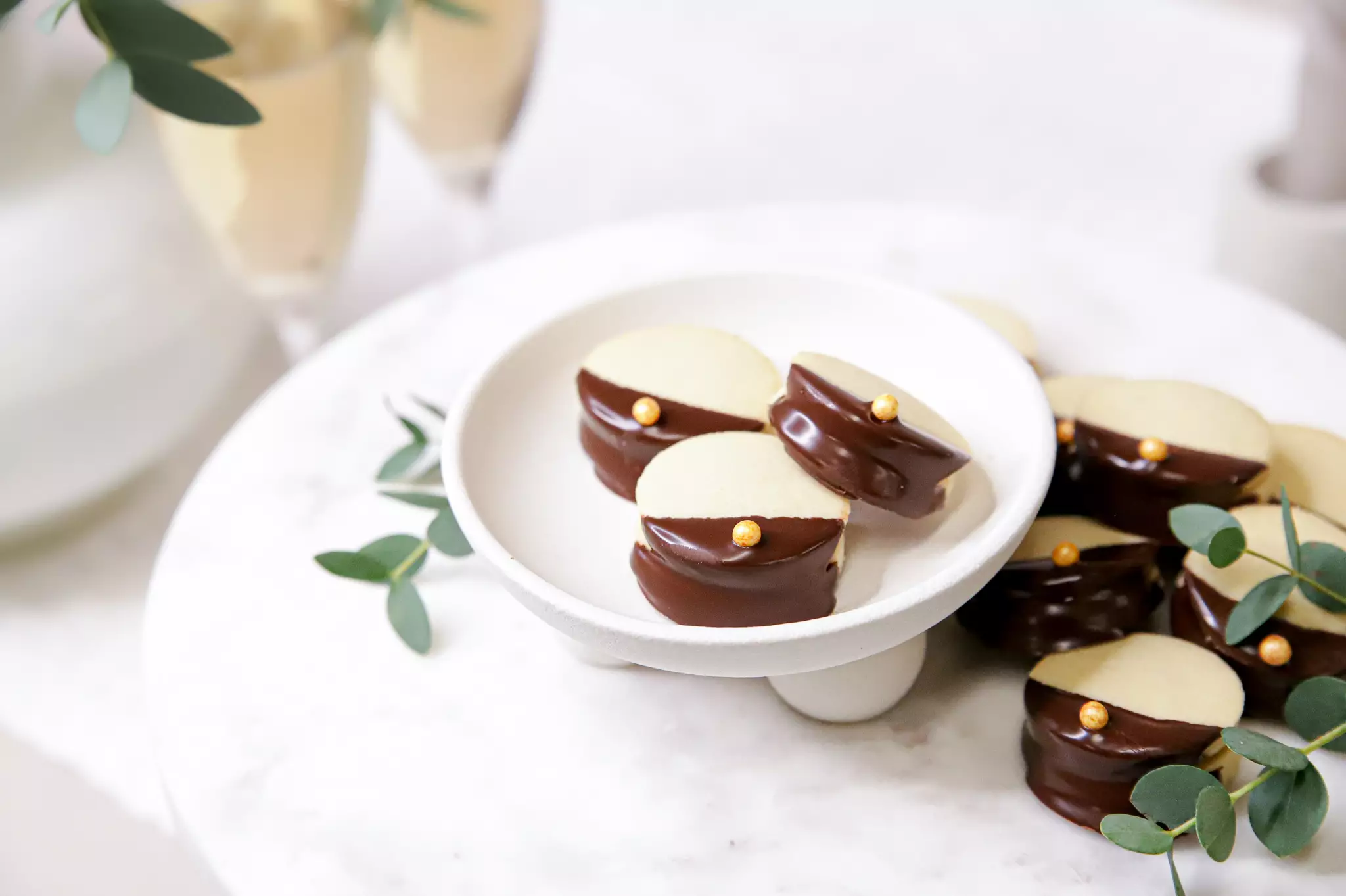 Vehnäjauho, laktoositon voi, sokeri, perunajauho, kananmuna, suklaakuorrute [sokeri, kasviöljy ja -rasva (osittain kovetettu), kaakaojauhe, herajauhe, emulgointiaineet (E492, E322), vanilliiniaromi], vadelmatäyte [vesi, sokeri, vadelma (13 %), muunnettu maissitärkkelys (E1422), hyytelöimisaine (E440), happamuudensäätöaineet (E330, E333), säilöntäaine (E202), aromi, väri (E120)], kultakuula [glukoosisiirappi, värit (E100, E171, E172), pintakäsittelyaine (E904), kasvirasva].